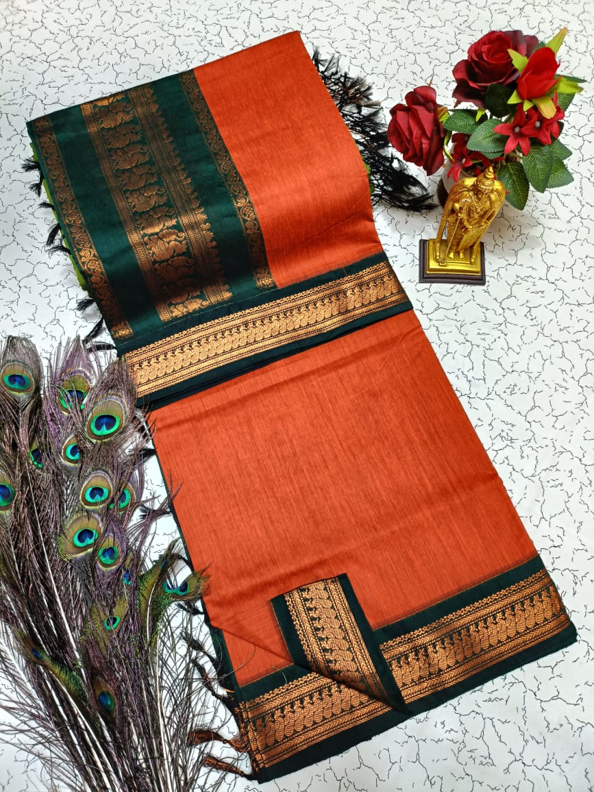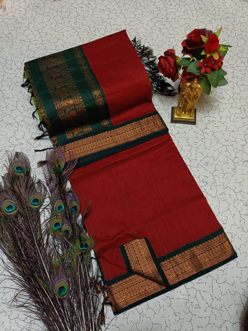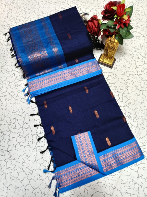 Perfect for both daily elegance and special occasions, the Kalyani Cotton Saree blends classic charm with contemporary comfort. Its grand jari pallu and contrasting blouse add a touch of festive sophistication, making it an ideal choice for cultural events, family gatherings, or simply elevating your everyday style.