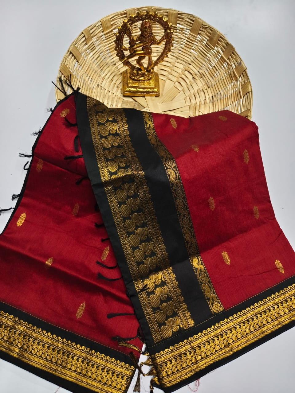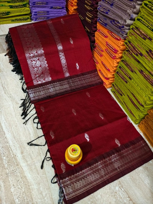 Whether it's a festive celebration, a traditional gathering, or a special occasion, this saree promises to elevate your style with its rich heritage and sophisticated charm. Its vibrant color options, including Maroon, Black, Blue with yellow, and Red with black, ensure you make a stunning statement.